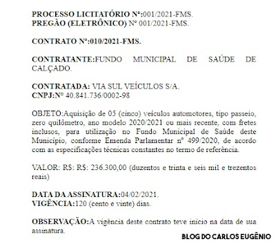 cinco novos veículos para a Secretaria de Saúde. Os Veículos, tipo passeio, custarão