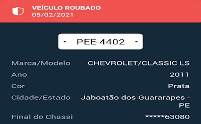 em Garanhuns. Dessa vez foi um Chevrolet Classic, cor prata e placas PEE-4402. O