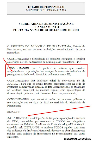 Paranatama, Valmir do Leite (PSB), revogou todas as delegações para exploração
