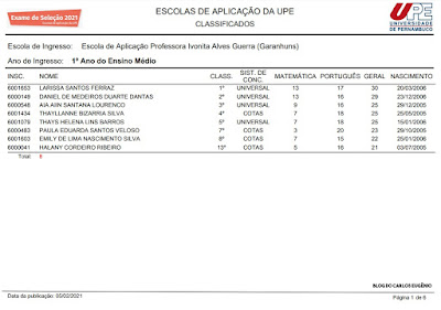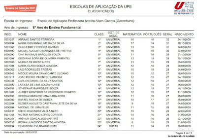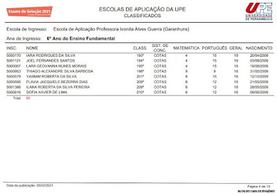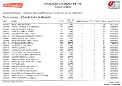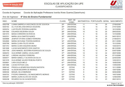 AQUI e confira o resultado referente a Escola de Aplicação Ivonita Alves Guerra.