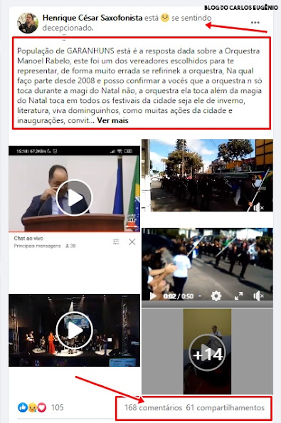 repercutiu negativamente na Cidade. O músico Henrique César saiu em defesa dos