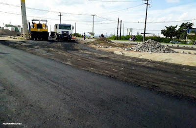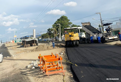 imagens dos serviços de revitalização asfáltica que vêm sendo realizados na via