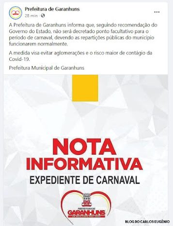 fechado no período do Carnaval aqui em Garanhuns. Isso mesmo: fechado! É que segundo