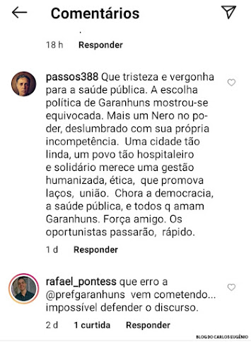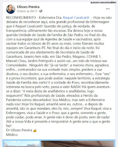 DESLUMBRADO COM SUA PRÓPRIA INCOMPETÊNCIA” – Ao comentar no Instagram uma postagem do Médico Ulisses Pereira sobre a decisão do Prefeito de Garanhuns em promover um rodízio dos Médicos nas