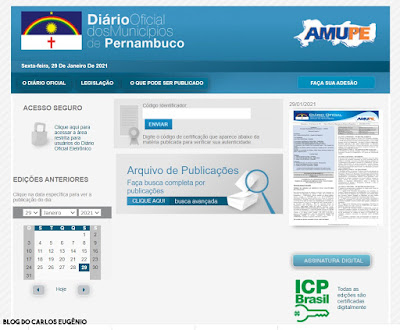 Municípios do Estado de Pernambuco desta sexta-feira, dia 29, traz a publicação