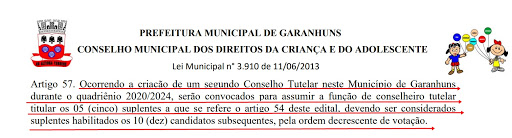 de passar a contar com o 2º Conselho Tutelar. É que, além da Legislação permitir
