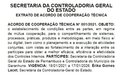 Interno foi firmado entre a Secretaria da Controladoria-Geral do Estado e a