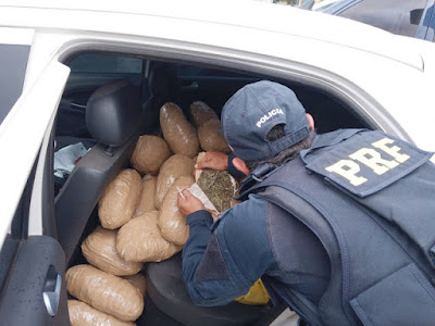 do carro foram encontrados 58 volumes de maconha embalada. O Motorista, de