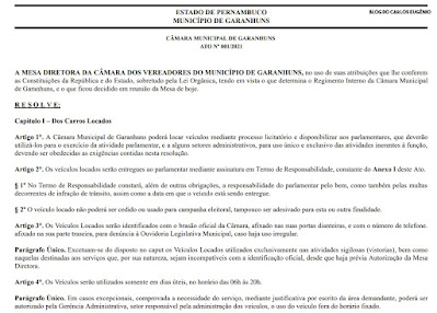 de veículos, os Parlamentares poderão fazer um comodato de até dois carros,