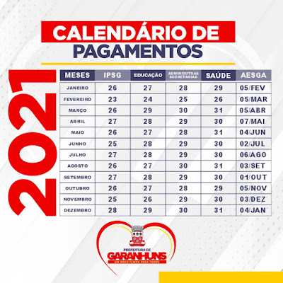 Administração, divulgou nesta sexta-feira, dia 22, o calendário de pagamento