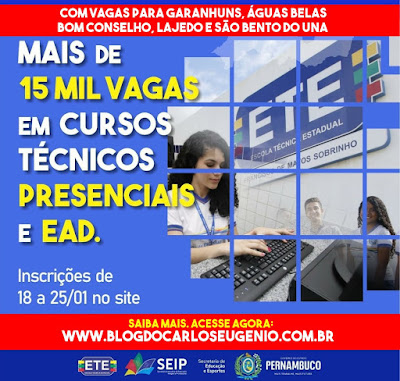 técnicas estaduais. Há opções em 58 cidades pernambucanas, distribuídas em