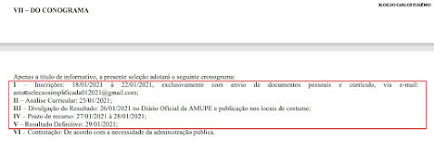 25 de janeiro de 2021. O processo seletivo será realizado em etapa única,