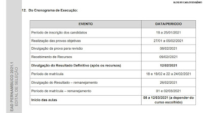 divulgado no dia 26. Já os possíveis recursos poderão ser efetivados nos dias 27