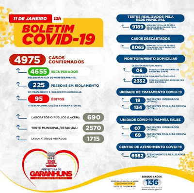 COVID-19 EM GARANHUNS – Ao todo, já foram confirmados 4.975 casos de COVID-19