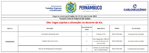que a Agência do Trabalho de Garanhuns oferece para amanhã, dia 13, três oportunidades
