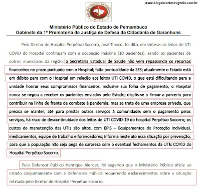 Hospital Perpétuo Socorro. O alerta do Diretor do Hospital, foi reforçado pelo Defensor