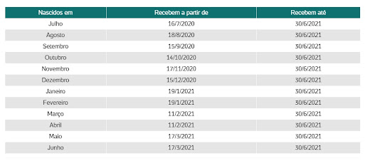 pela Caixa. O cronograma segue conforme o mês de nascimento para empregados da