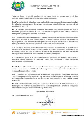 contar com feirantes residentes em Iati. Ainda segundo o Decreto, todos os