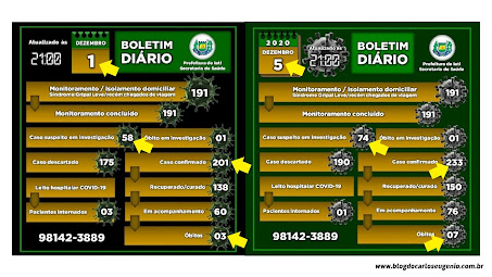 com o Boletim COVID-19 emitido pela Secretaria Municipal de Saúde nesse