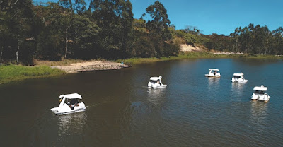 por momentos de fotografias; distribuição de pipocas; algodão doce; além de pedalinho