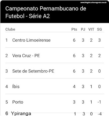 derrota do Vera Cruz para o Íbis, também por 1×0, o Sete agora divide a liderança