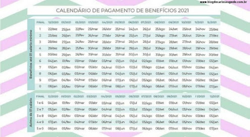 Pagamentos de Benefícios em 2021. As datas de pagamento das aposentadorias,