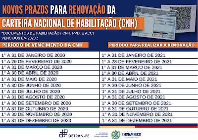 que tiveram habilitação vencida no período de 2020, que ocorrerá a partir de 1º