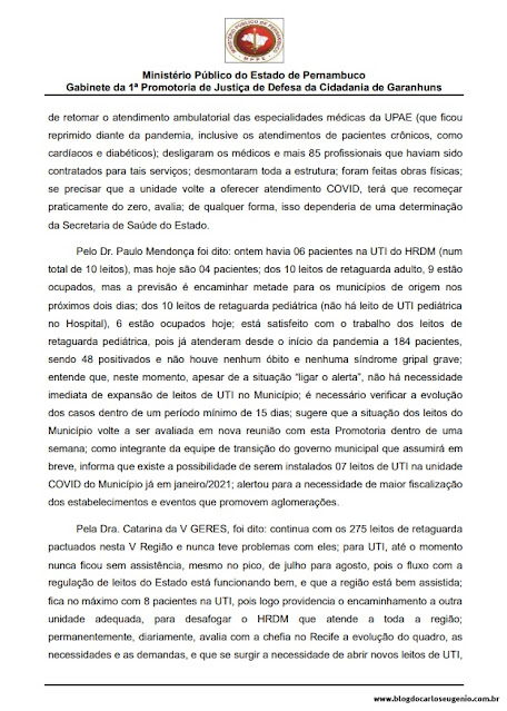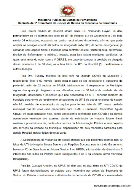 UTI (em Garanhuns, que é referência para o Agreste Meridional), destinados ao