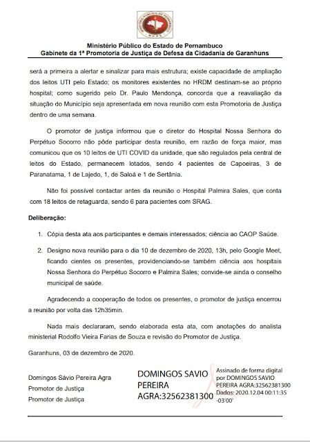 pelo Promotor Domingos Sávio, foi relatado que a situação ainda não exige a