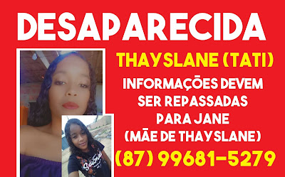 pedir que qualquer informação sobre o paradeiro de Thayslane, seja repassada