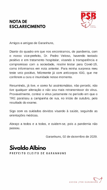 diagnosticado com a COVID-19, e veio a óbito no último dia 23 de novembro, em