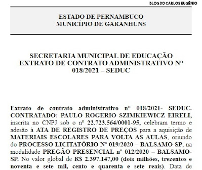 Rede Municipal de Ensino. O Contrato nº 018/2021-SEDUC, assinado pela secretária