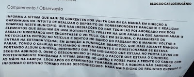 bandidos levaram R$ 10.040,00 em espécie, um aparelho celular e cartões de crédito. Em seguida