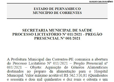 de Correntes pretende investir até R$ 562.510,81 na aquisição dos produtos. O
