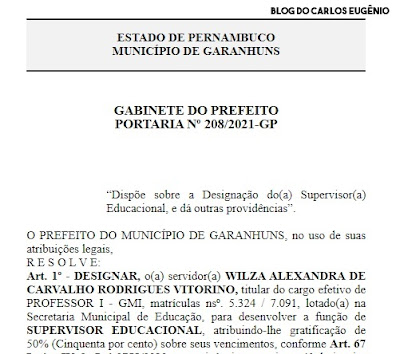 Prefeito Sivaldo Albino (PSB), através da Portaria nº 208/2021-GP, a Secretária,
