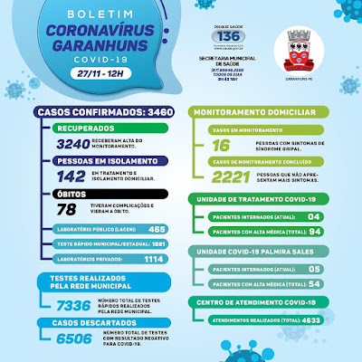 dia 27, Garanhuns já havia confirmado 3.460 casos de COVID-19. Deste total, 78