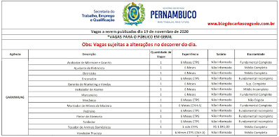 que a Agência do Trabalho de Garanhuns oferece para hoje, dia 19, catorze oportunidades