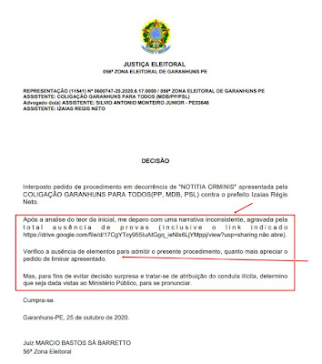 Clique AQUI para conferir a decisão do Juiz Eleitoral e o Parecer Ministerial do Promotor Eleitoral. O Blog está à disposição dos