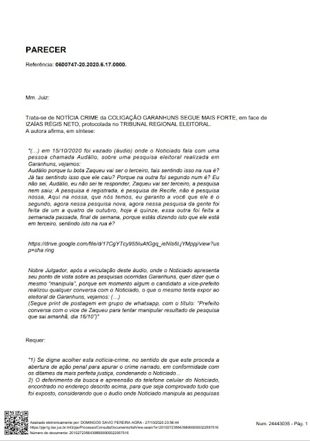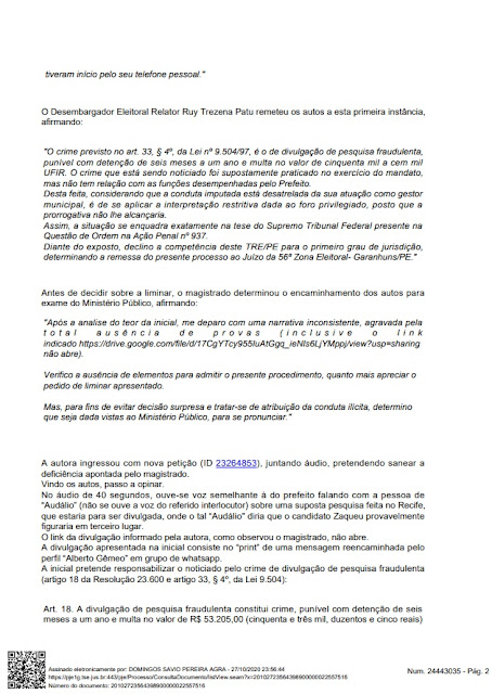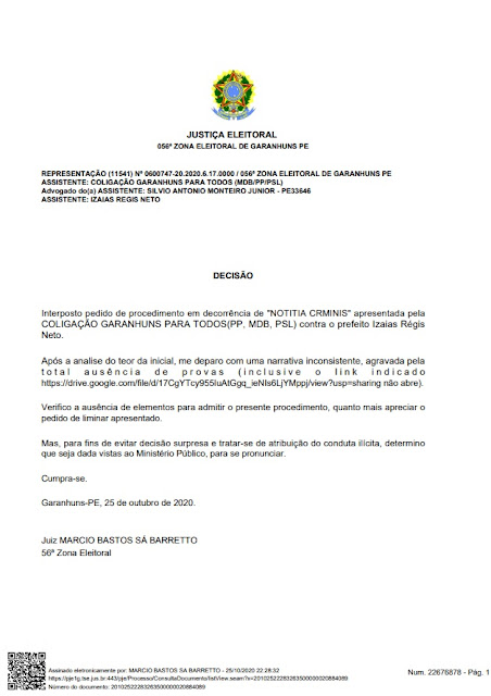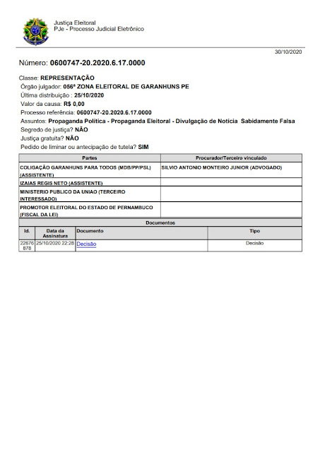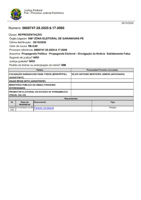 Público, para se pronunciar”, registrou o Juiz Eleitoral de Garanhuns em sua
