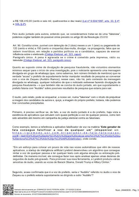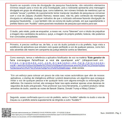 contra as fakenews. Segundo, acaso confirmada que é a voz do prefeito, seria o