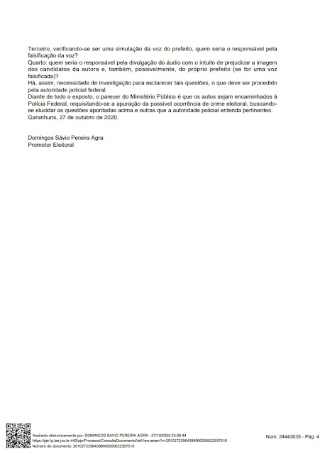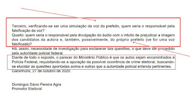Ministerial, o Promotor Domingos Sávio sugeriu ao Juiz Eleitoral que os autos fossem