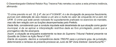 Eleitoral, através do Desembargador Eleitoral Relator Ruy Trezena Patu, registrou