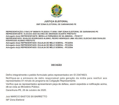 tocante a restrição de voltar a atribuir ao candidato Doutor Silvino (PTB) a