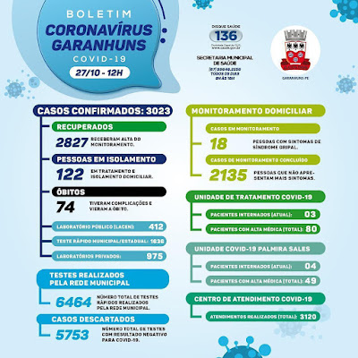 Ao todo, já foram confirmados 3.023 casos de COVID-19 em Garanhuns.