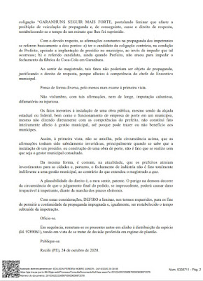 segurança impetrado pela Frente Popular e sobrepôs à decisão do Juiz Eleitoral