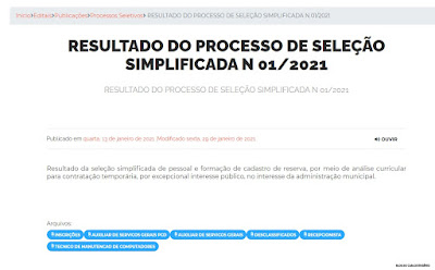 da seleção simplificada N° 01/2021, que tem como objetivo a contratação