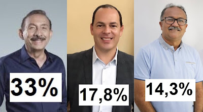 Silvino aparece com 36,14%, enquanto que Sivaldo tem 20,05% e Zaqueu surge com 19,8%.