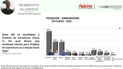 Pesquisa contratada pelo Blog do Roberto Almeida e realizada pelo Advise/Contextto reforça os