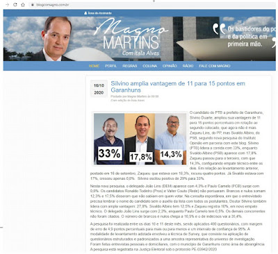 que revelam os dados de uma Pesquisa contratada pelo Blog do Roberto Almeida e