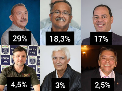 4,5%; Paulo Camelo (PCB), 3% e Givaldo Calado (Avante), que desistiu da